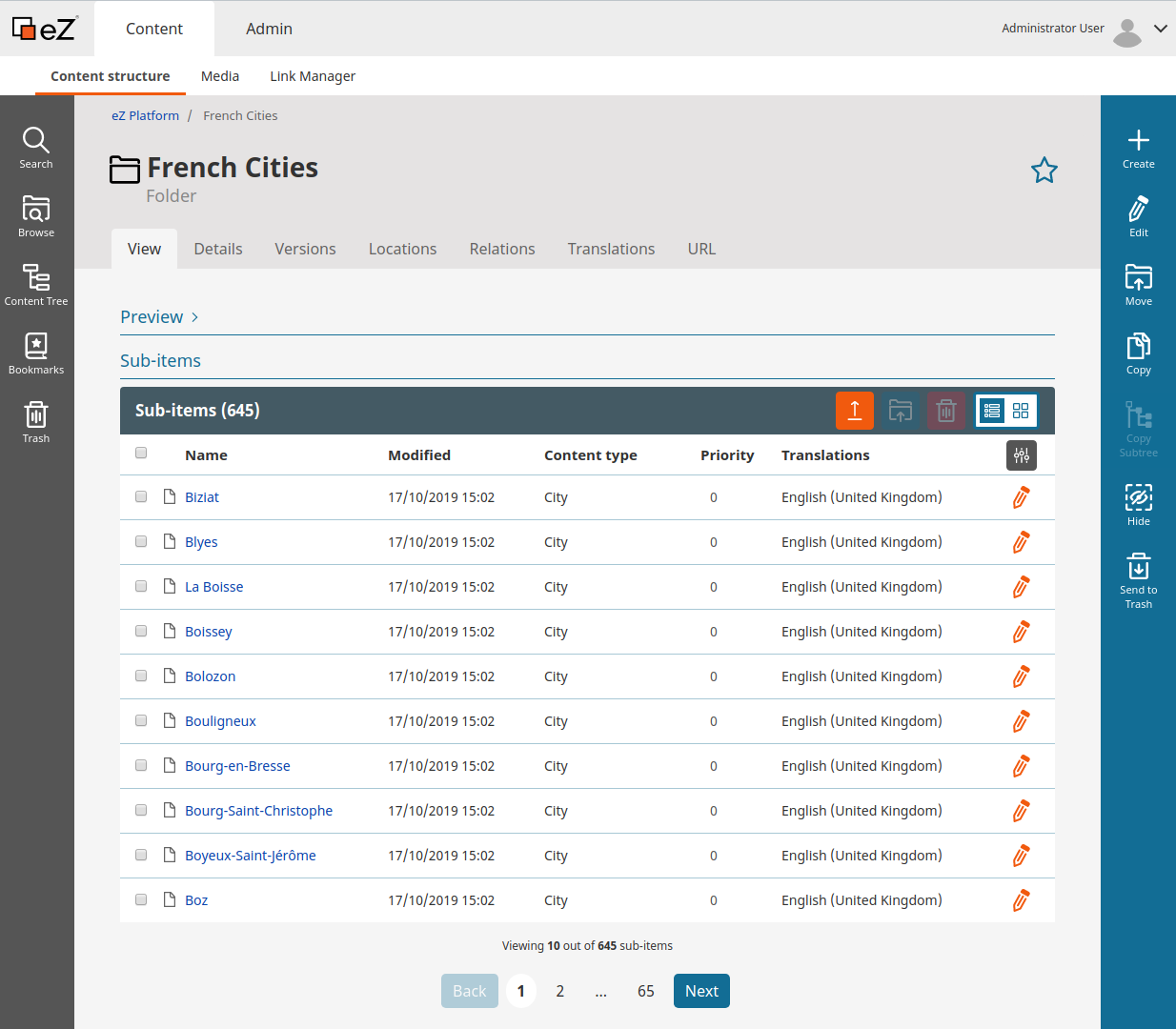 After reading the job details, you can go to the content to view all imported contents. Click on "Content" on the page top, and "Content structure" just on the line below.