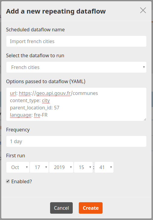 This tutorial will teach you how to periodically import French cities from an external HTTP API into eZ contents with Dataflow and eZ Dataflow.