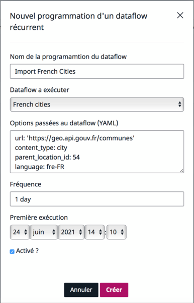 This tutorial will teach you how to periodically import French cities from an external HTTP API into Ibexa Content with Dataflow and eZ Dataflow.