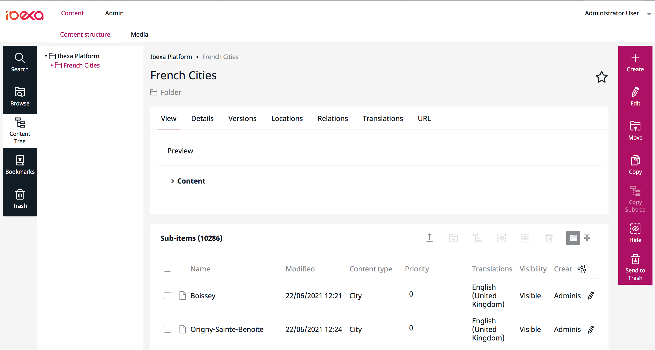 After reading the job details, you can go to the content to view all imported contents. Click on "Content" on the page top, and "Content structure" just on the line below.